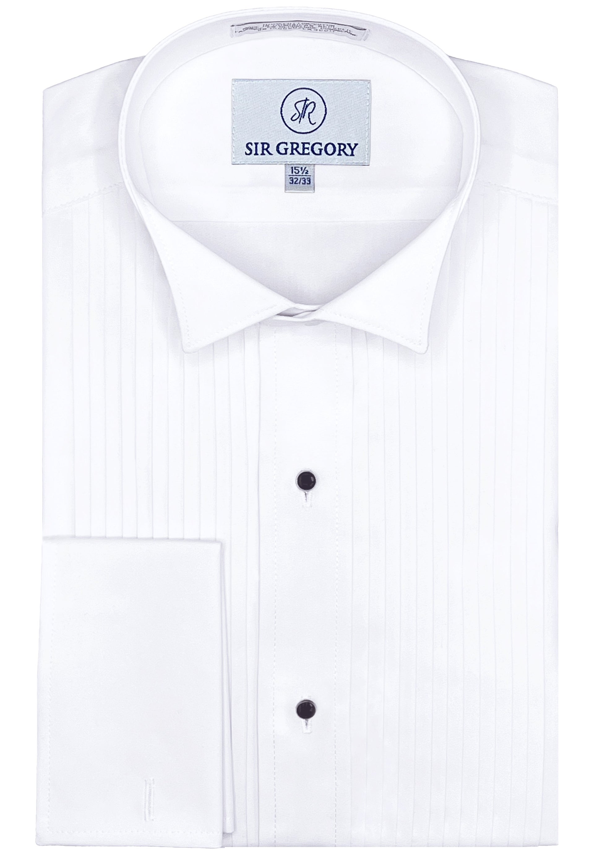 Sir Gregory Men's Regular Fit Tuxedo Shirt 100% Cotton Wing Collar French Cuff 1/4 Inch Pleat