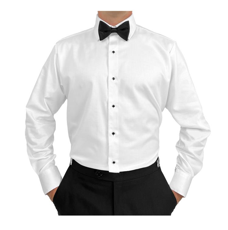 (New Without Tags) Sir Gregory Men's Fitted Black Tuxedo Shirt with Wing Collar French Cuffs and 1/4 Inch Pleat