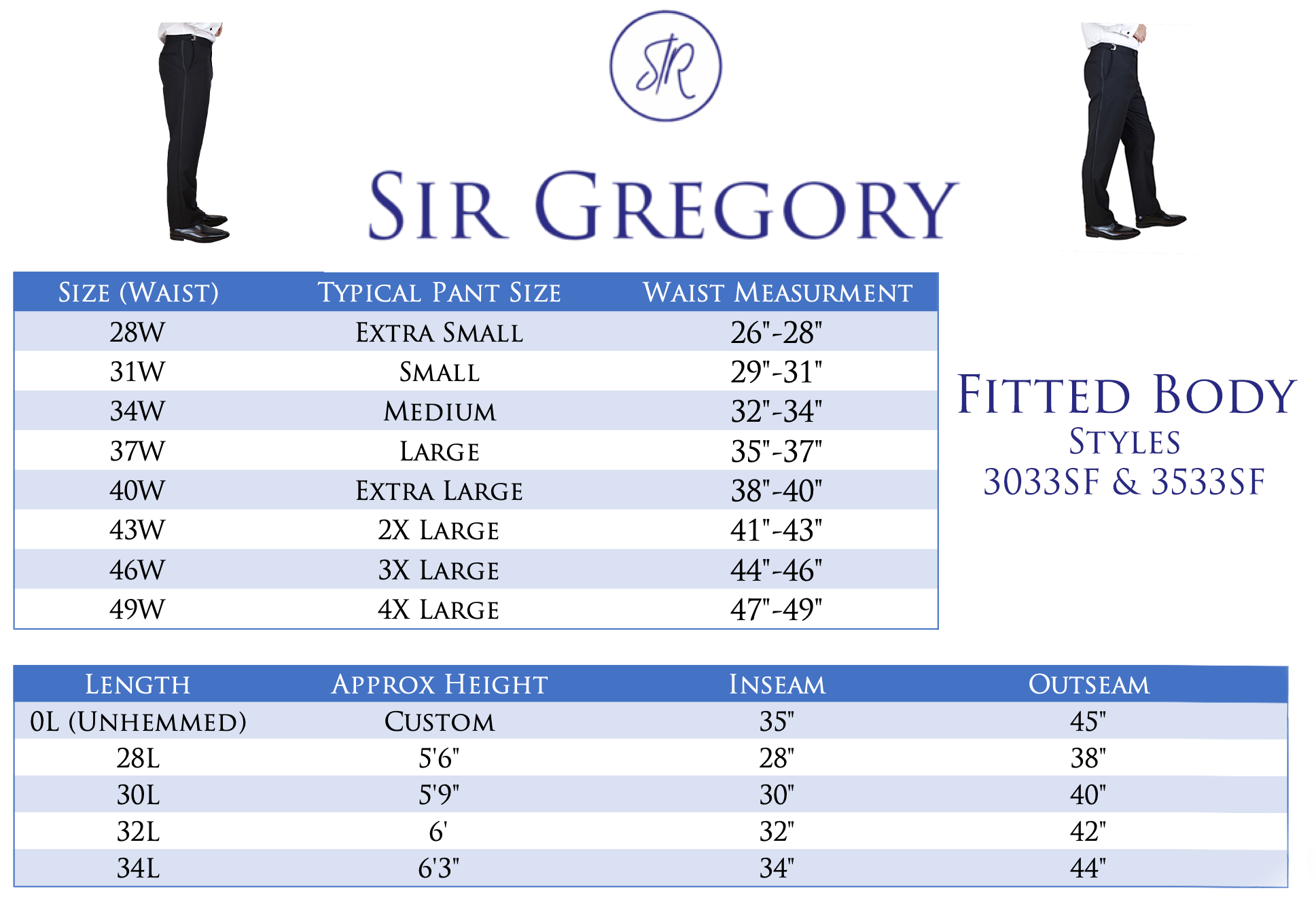 Specially Designed for a Modern and Slender look. Model Wearing Size Medium: 33-35 Waist 30 Length. Approximate bottom opening is 8.5" on a size Medium 33-35 Waist. This is a fitted pant that comes unhemmed or hemmed to your desired length. If you would like a custom length, please feel free to email me at greg@sirgregory.com and I will get back to you with an estimated completion.