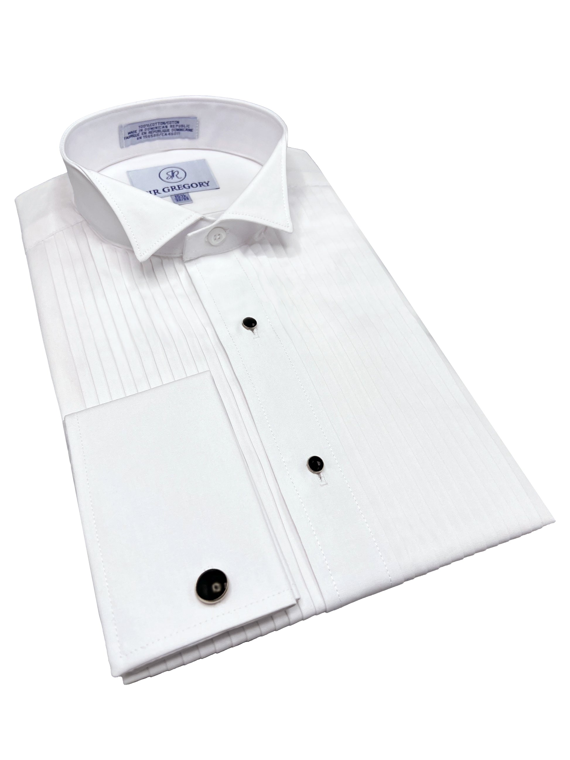 (Used) Sir Gregory Men's Regular Fit Tuxedo Shirt 100% Cotton Wing Collar French Cuff 1/4 Inch Pleat